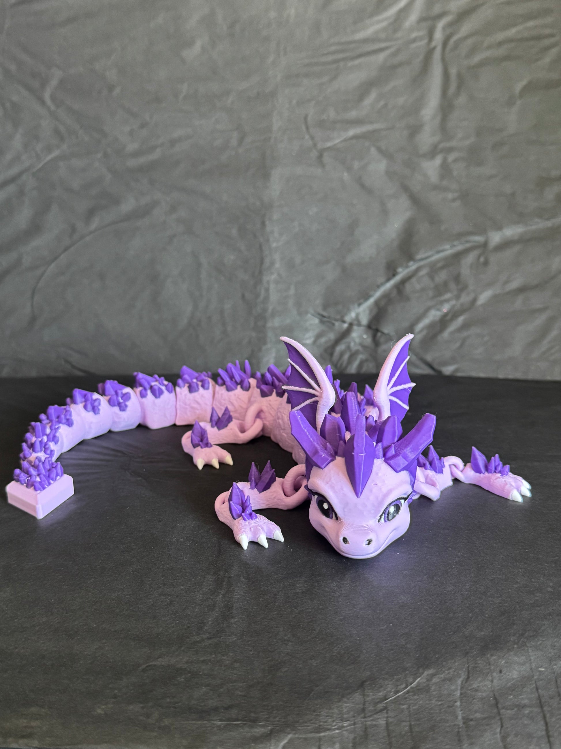 The Amethyst Dragon (full size) is a meticulously crafted 3D model that captures the intricate details and majestic presence of this mythical creature. Expertly designed to showcase the rich purple hues and crystalline textures characteristic of amethyst, this full-size piece serves as a striking centerpiece for collectors and enthusiasts alike. Its precise construction ensures durability and visual impact, making it an exceptional addition to any display or themed environment.