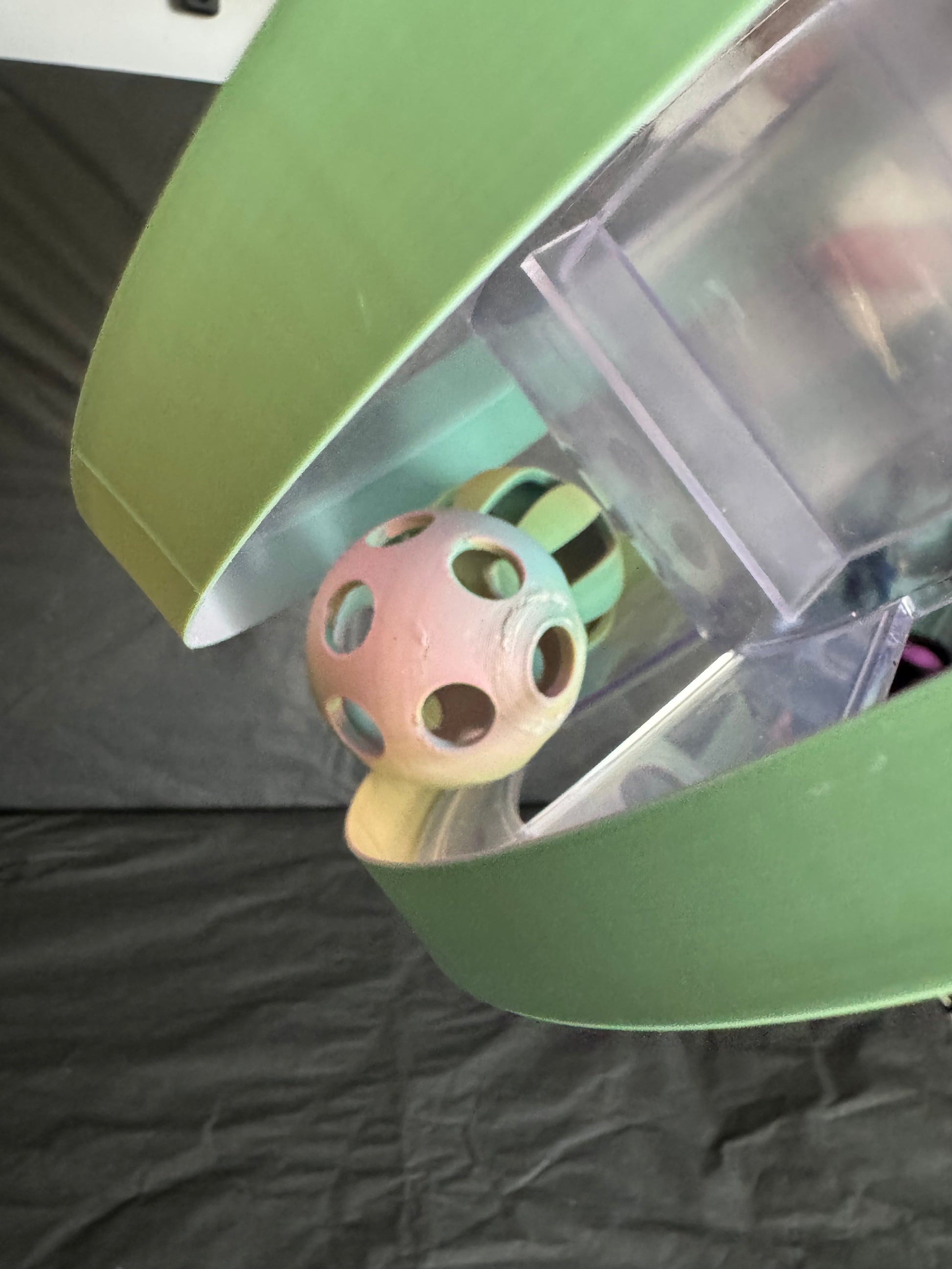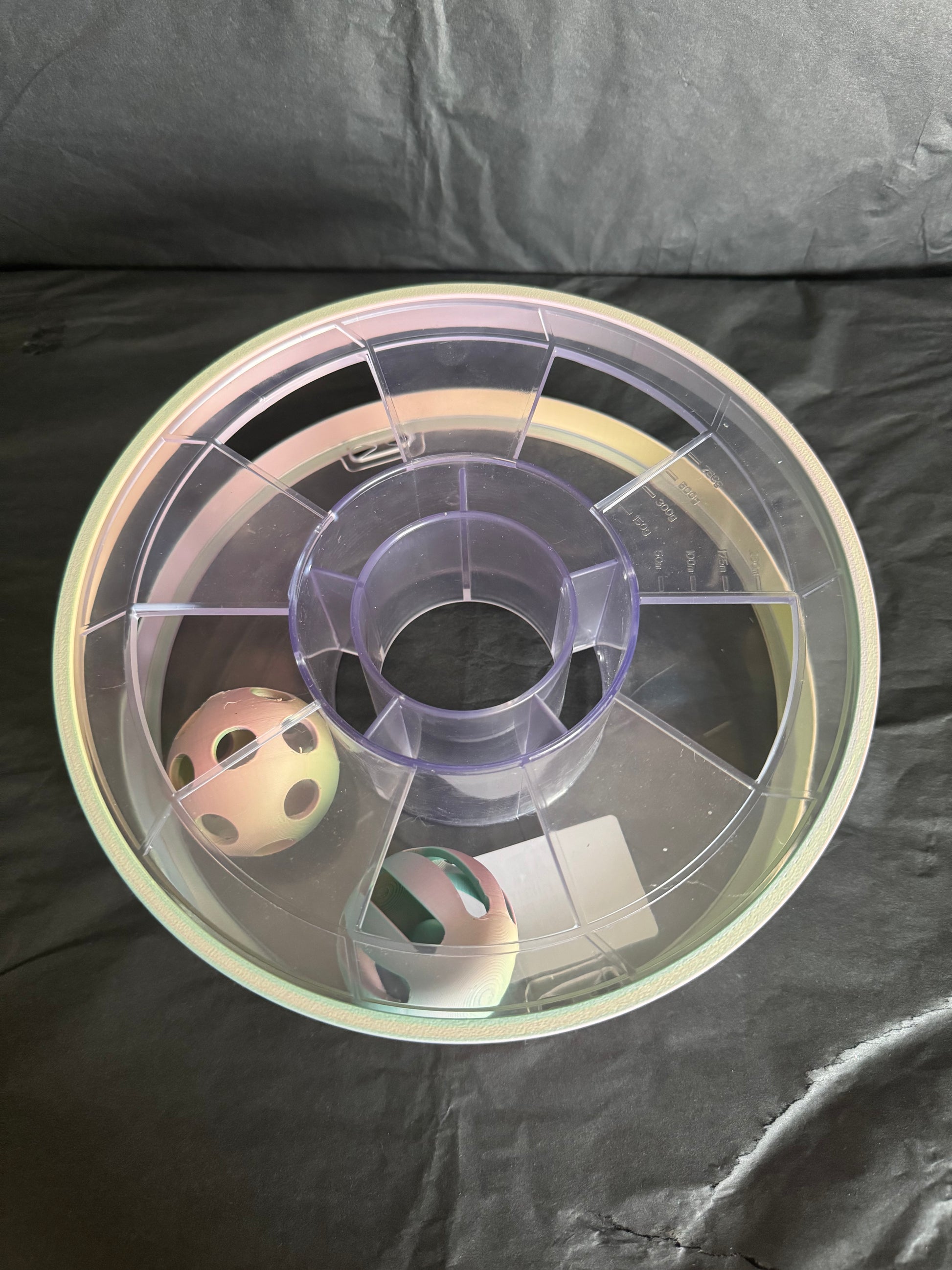 Crafted from recycled filament spools, this cat toy features two durable balls designed to engage and entertain. Tested with Bengal cats, it offers a stimulating play experience that encourages natural hunting instincts while promoting physical activity. An eco-friendly choice that combines sustainability with feline fun.