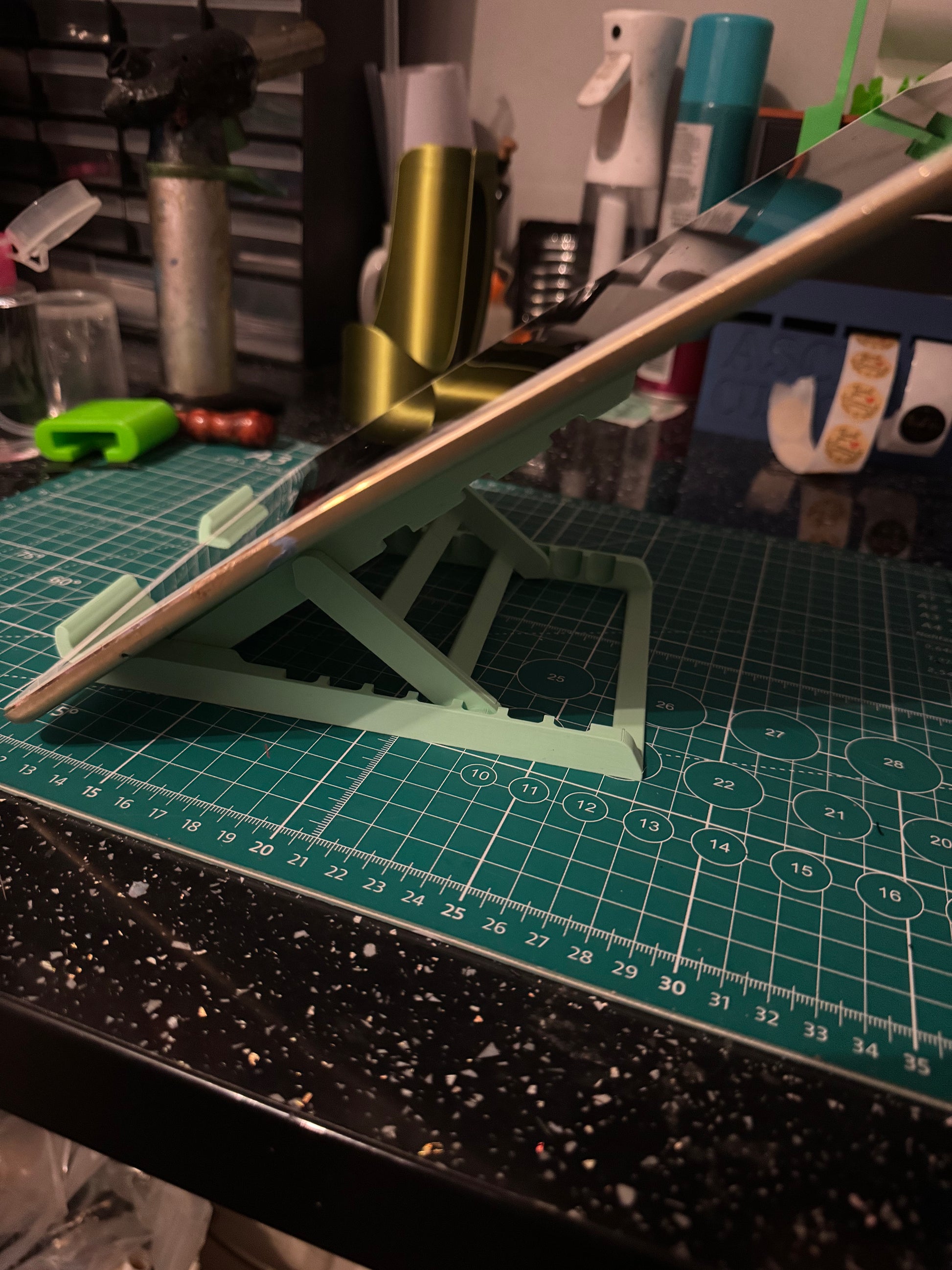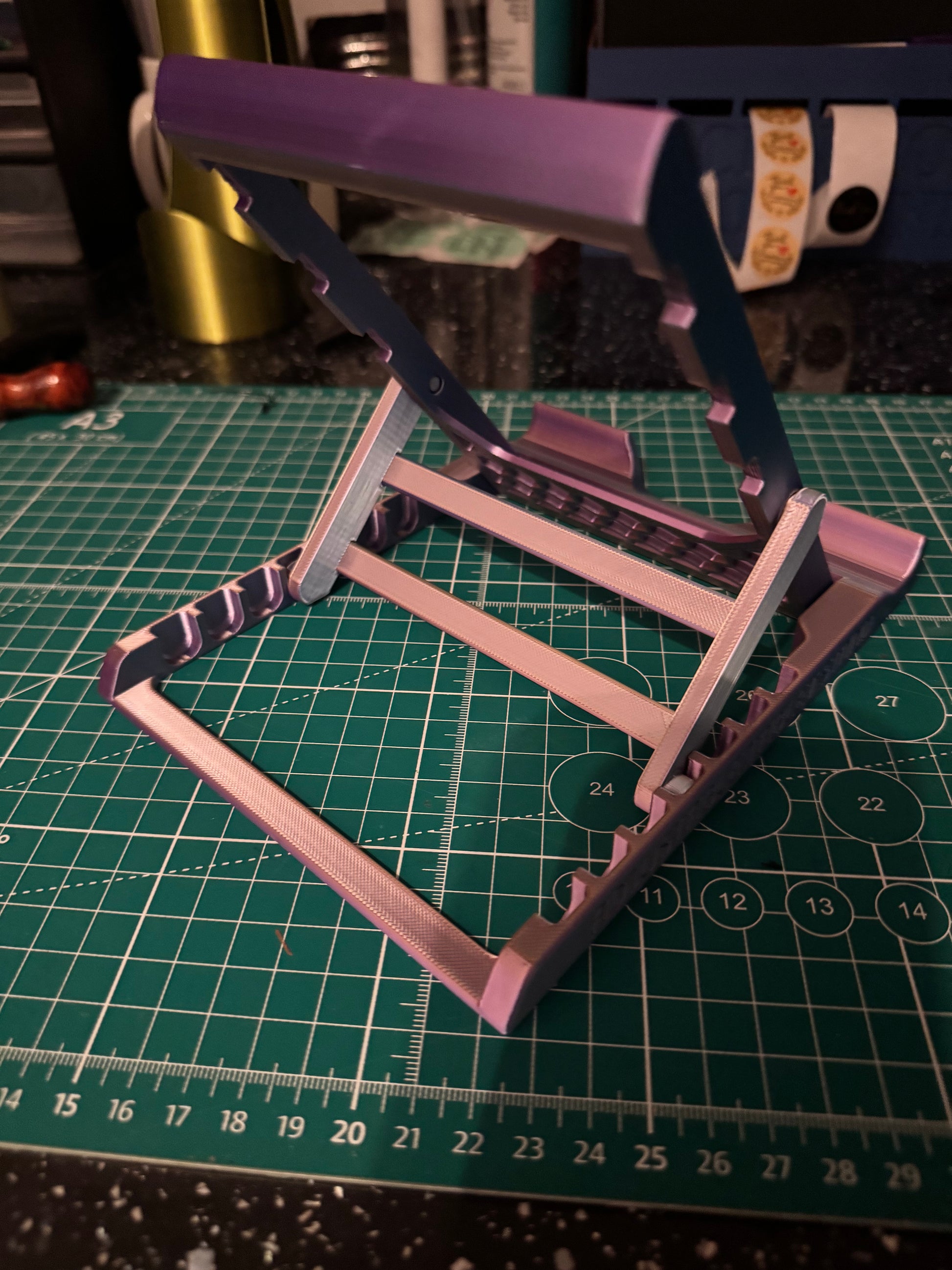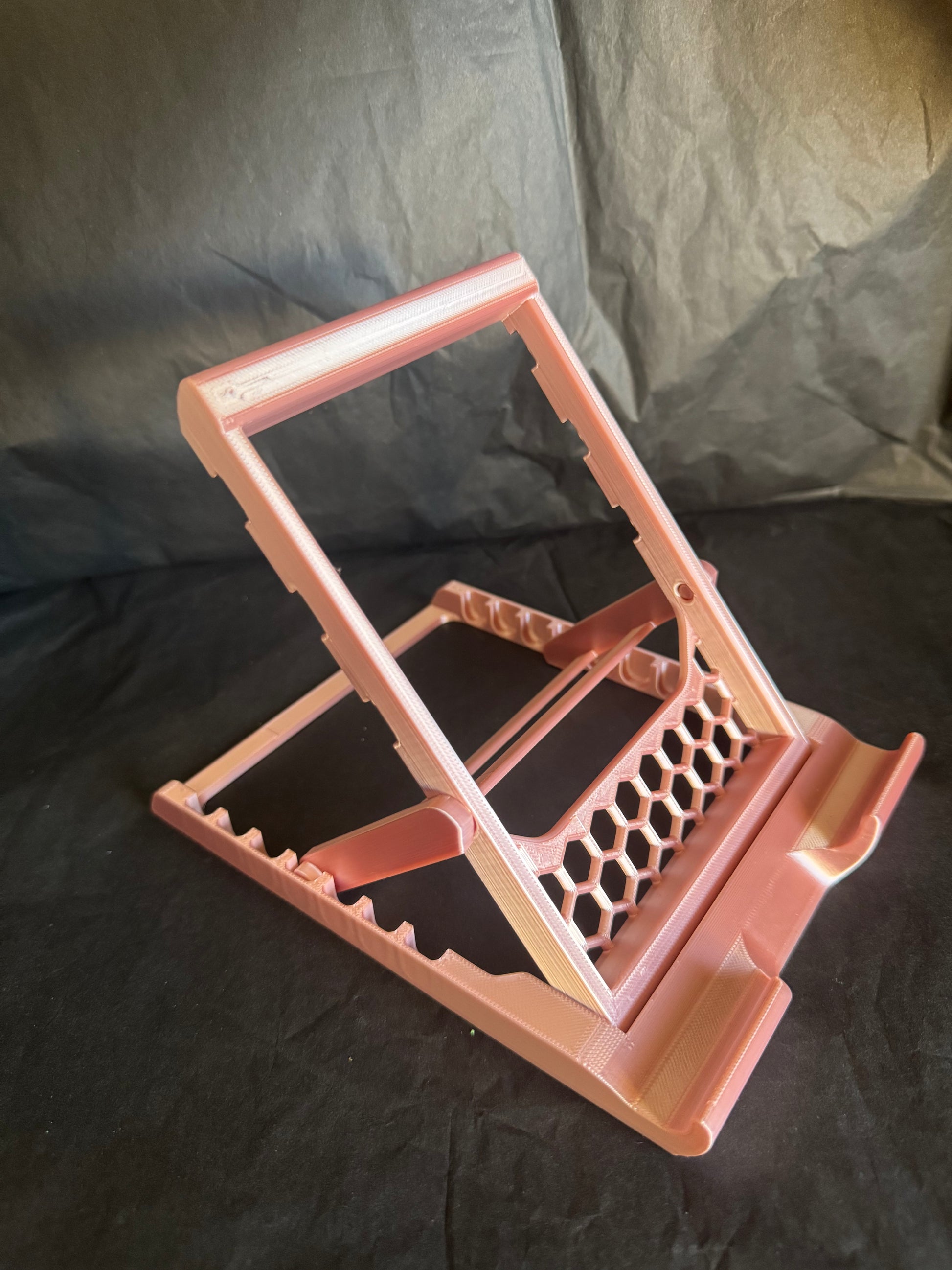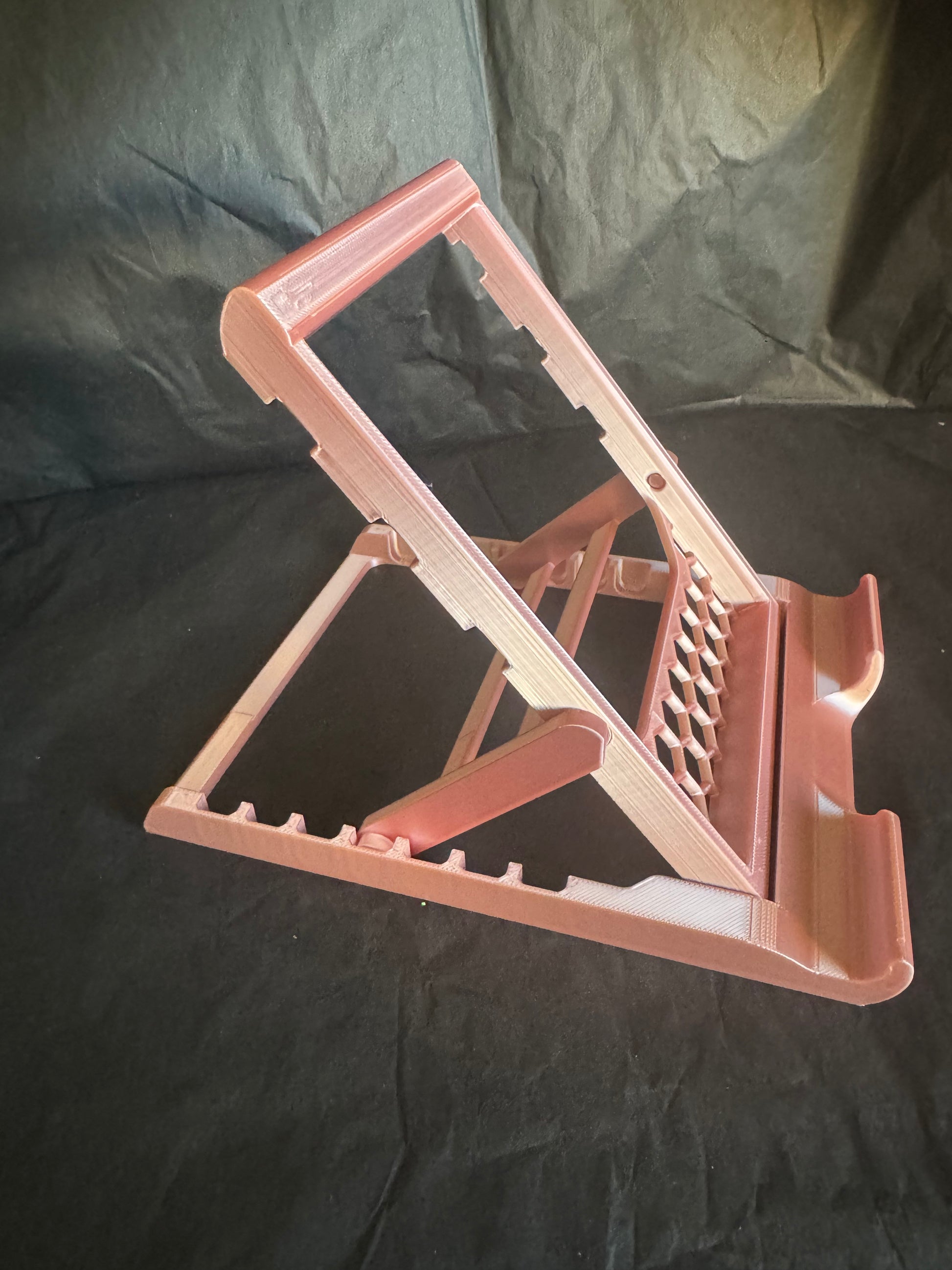 Expertly display your tablet with the Adjustable Tablet Stand. With 7 positions to choose from, this deck chair style stand provides versatility and comfort. Available in a variety of colors, it's perfect for travel and easily folds down for storage. Stay hands-free and organized with this collapsible stand.